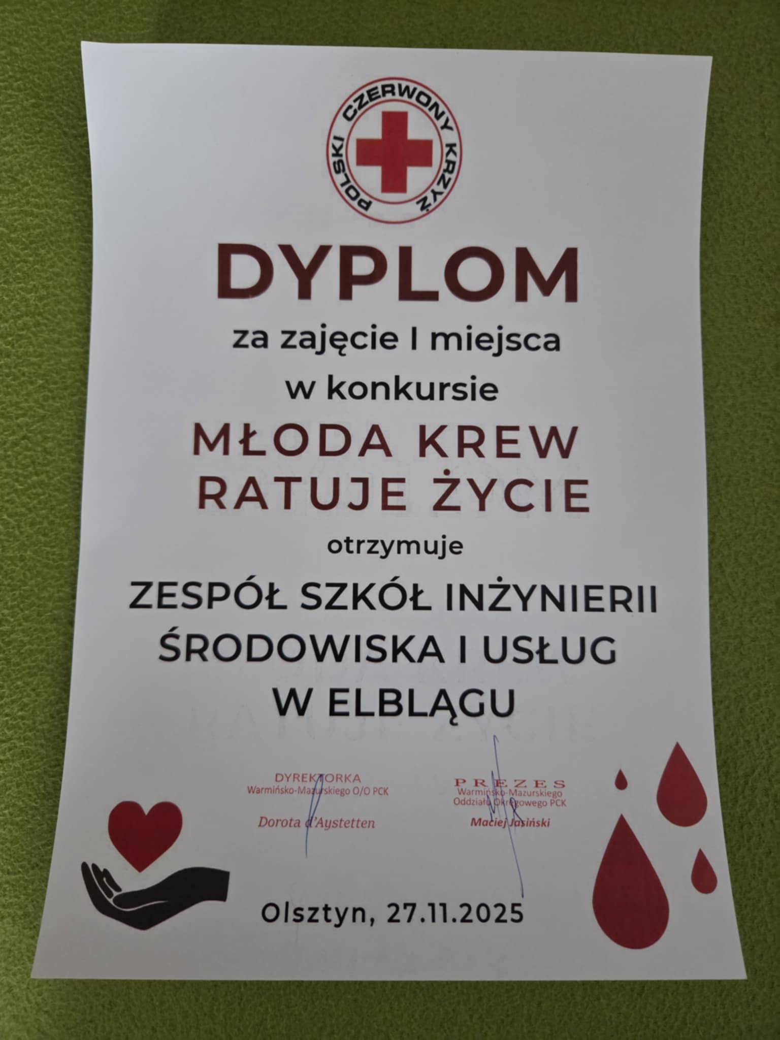 W dniu 27 listopada w Olsztynie odbyła się Warmińsko-Mazurska Okręgowa Gala Honorowych Dawców Krwi, na której to Szkolny Klub HDK PCK z Zespołu Szkół Inżynierii Środowiska i Usług im. Mikołaja Kopernika po raz 12. z rzędu zajął 1 – miejsce na szczeblu województwa.