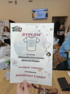 I miejsce w konkursie plastycznym „Kosmiczny T-shirt” zajęła Aleksandra Koszowska z klasy II fryzjer.