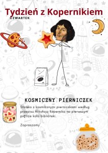 Młodzież rozwiązywała także krzyżówki i łamigłówki związane z tematyką astronomiczną, biorąc udział w zabawie „Kosmiczny escape room”. Na znawców biografii i działalności naukowej Mikołaja Kopernika w szkolnej bibliotece czekał słodki poczęstunek w postaci „Kosmicznych pierniczków”. Ostatniego dnia obchodów „Tygodnia z Patronem” odbył się finałowy konkurs pod hasłem „Kosmiczny Świat Kopernika”, w którym uczestnicy musieli wykazać się ogromną wiedzą na temat osiągnięć i biografii naszego Patrona.