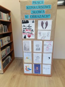 Jednym z wielu zaplanowanych działań w związku z realizacją projektu Narodowy Program Rozwoju Czytelnictwa było ogłoszenie konkursu plastycznego dla uczniów naszej szkoły pt. ”Słowa w obrazach”. Zadanie polegało na wybraniu cytatu z ulubionej książki i stworzeniu do niej ilustracji. Technika wykonania pracy była dowolna, liczyła się pomysłowość i kreatywność. Termin składania prac upłynął 15 października 2025 roku.