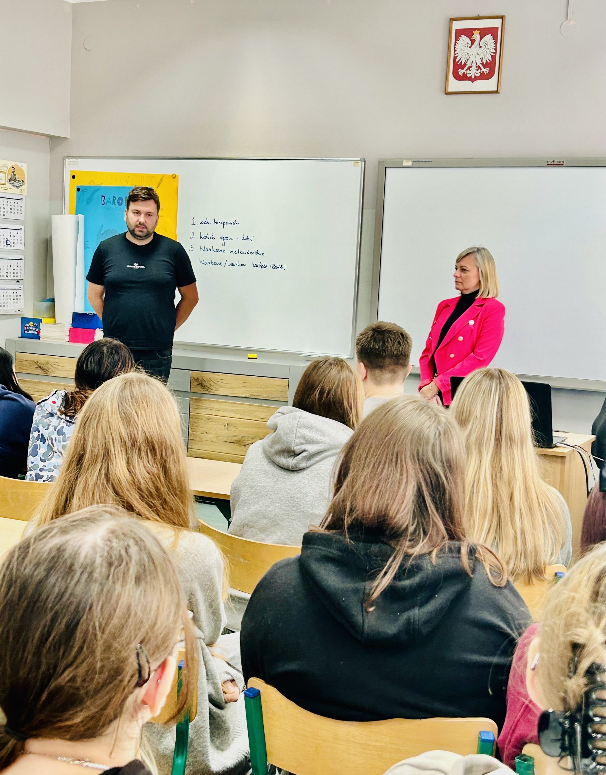 Nie zabrakło też słów uznania dla naszej szkoły – Krzysztof zauważył, jak nowocześnie wyposażone są pracownie i jak profesjonalnie wygląda nauka zawodu w ZSIŚiU.