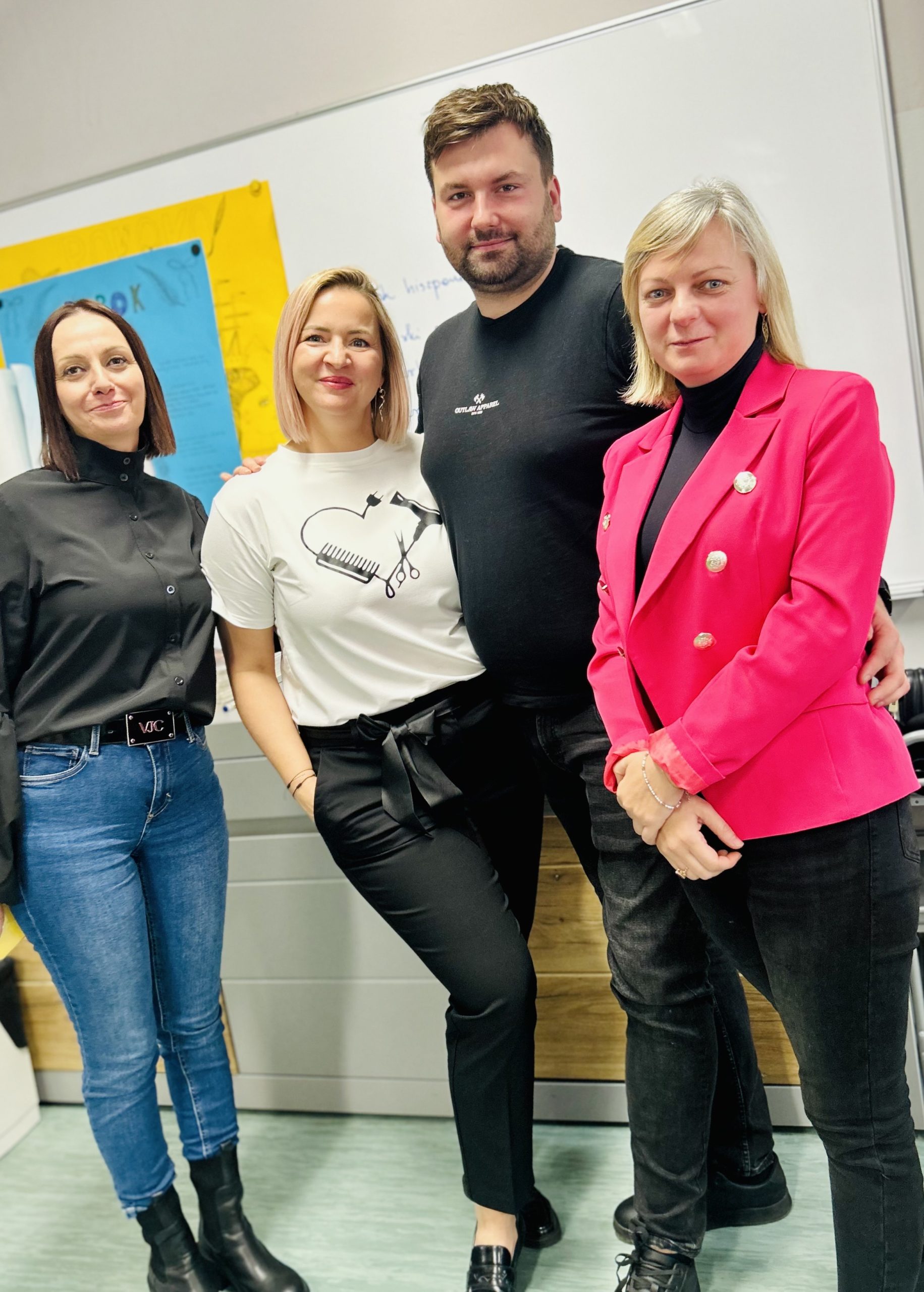 Krzysztof podkreślił, że dopiero po latach docenia się, dlaczego uczymy się teorii i trudnych rzeczy – to właśnie do tej wiedzy wraca się w codziennej praktyce fryzjera.